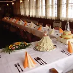 En kontinental frukost serveras på Lovecky Hotel Jivak i Loučeň.